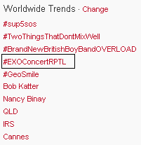 [INFO] 130513 EXO's roleplay hashtag #EXOConcertRPTL is trending world-wide on Twitter!