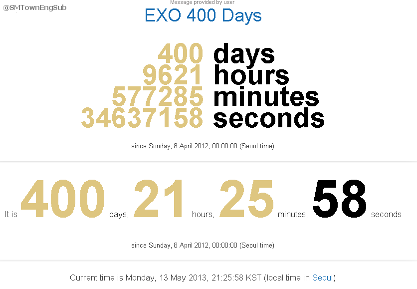 [INFO] Today May 13, 2013 marks EXO's 400 Days since debut