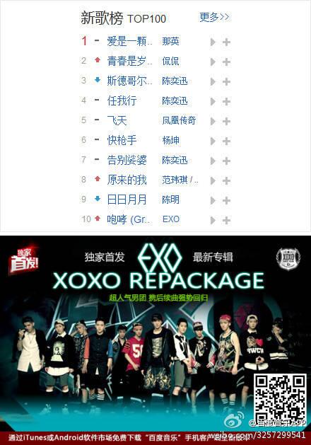 [INFO] 130806 Growl is #10 today on 百度音乐(Baidu Music) Top 100 songs